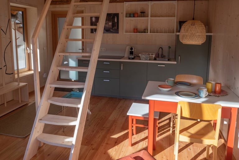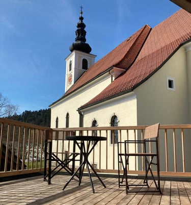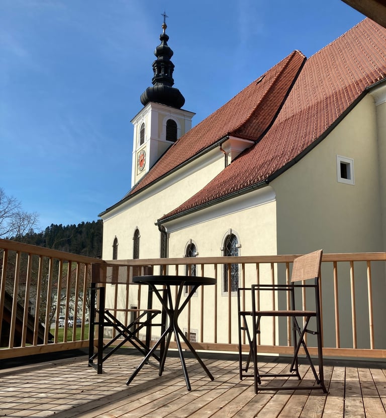 Unsere Ferienwohnung befindet sich mitten auf dem barocken Dorfplatz Viechtwang im oberösterreichischen Almtal, eingebaut in einen 200 Jahre alten Stadl. Auf drei Etagen genießen Sie modernen Komfort in einem historischen Holzbau, mit weiten Ausblicken in die Berge und auf den Dorfplatz mit seiner Barockkirche.